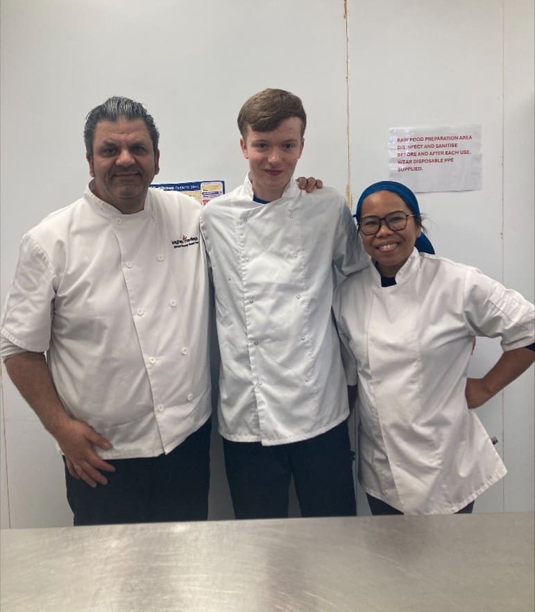 Callum Coghlam, our first work experience student in hospitality, was welcomed to our catering team in partnership with Expanse learning in recent weeks. Every Wednesday Callum joins our chefs, Simon and Chris, to continue developing his skills in food preparation and kitchen operations.